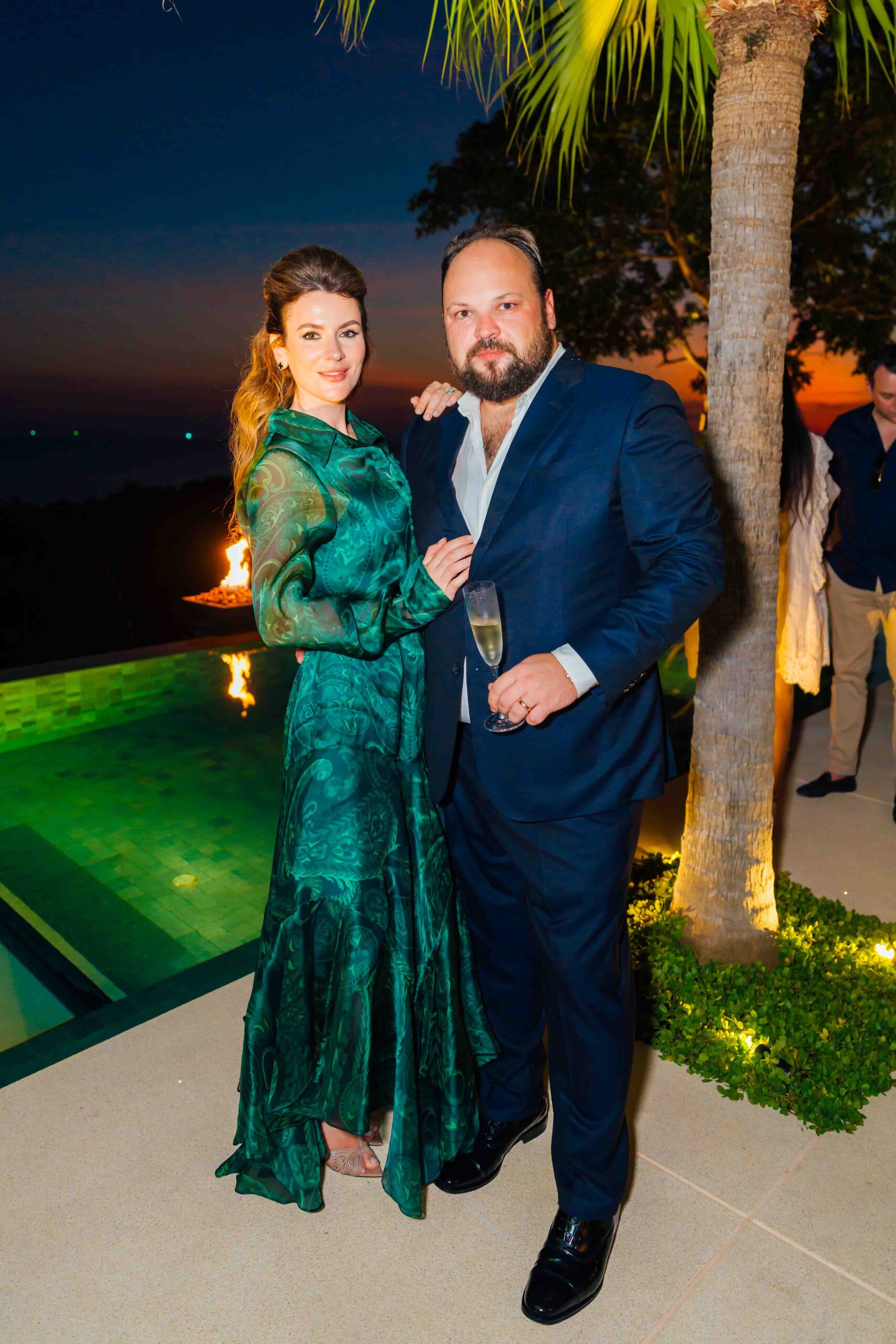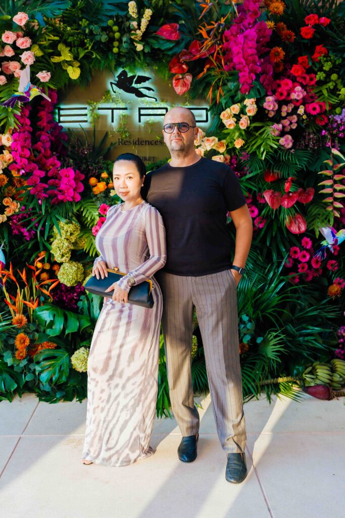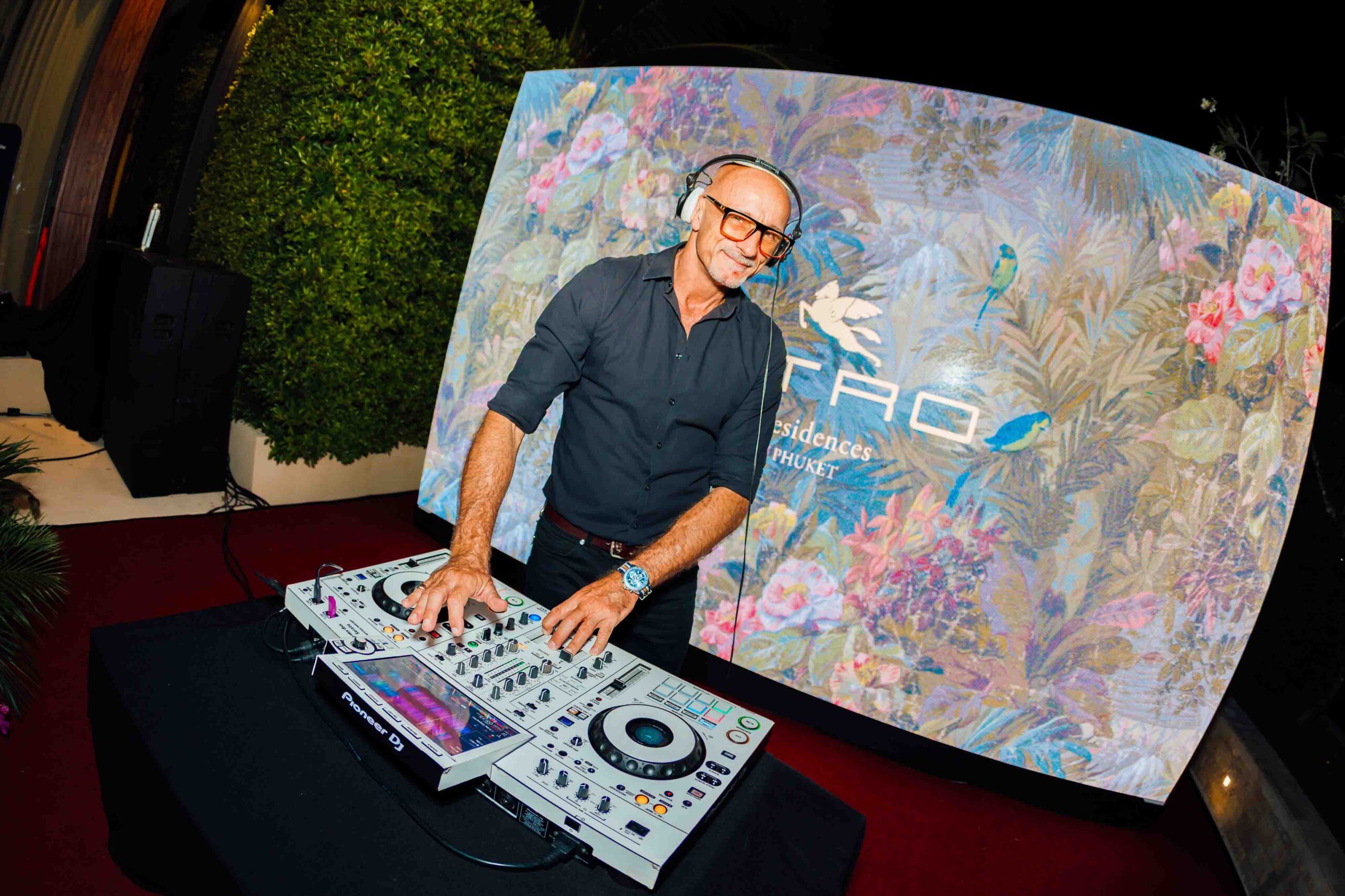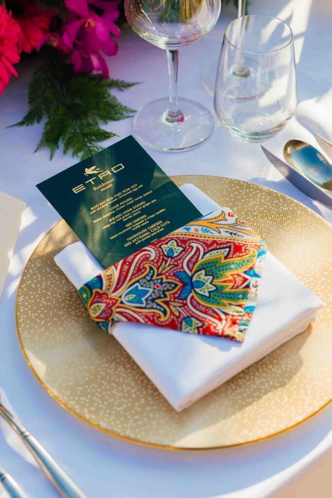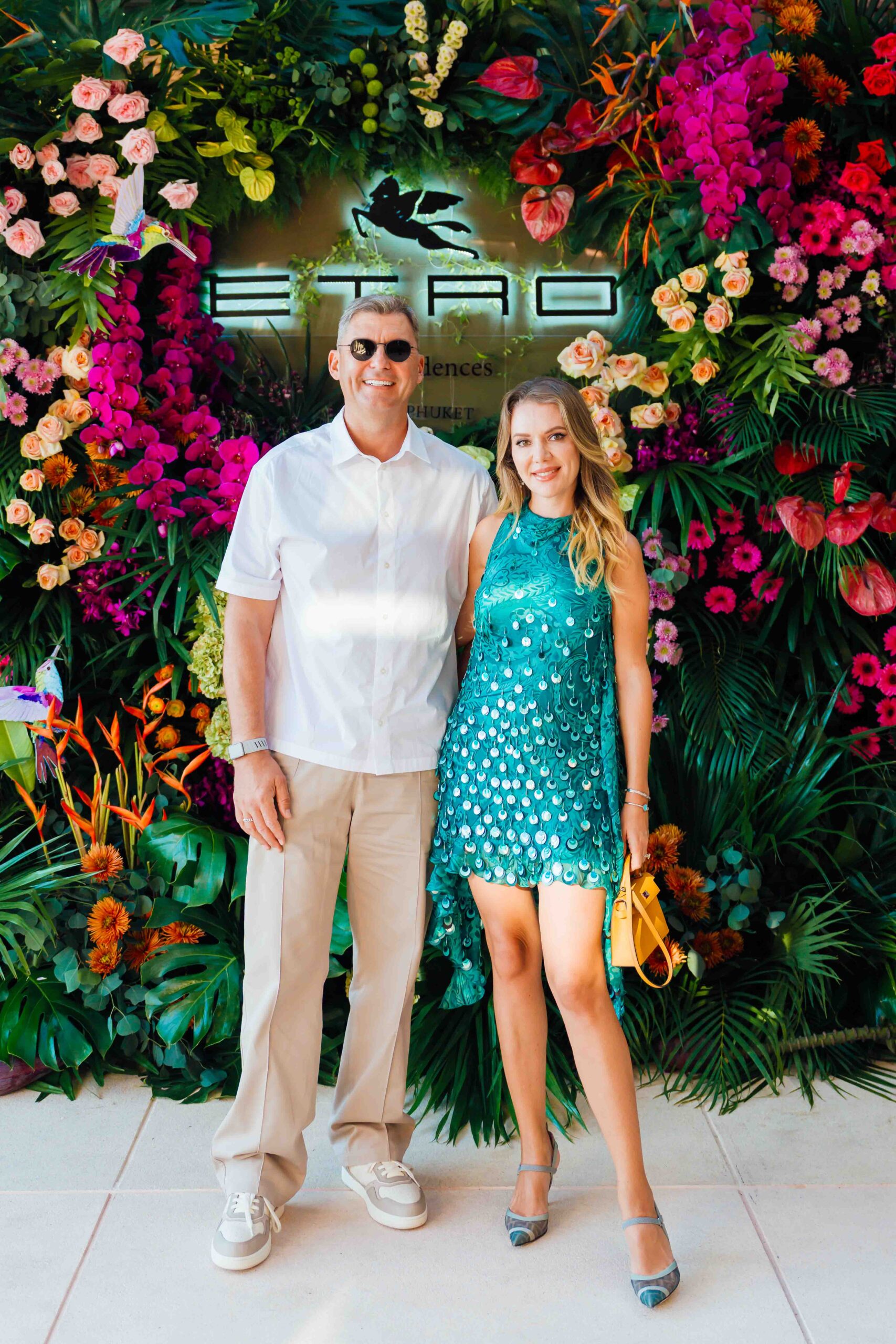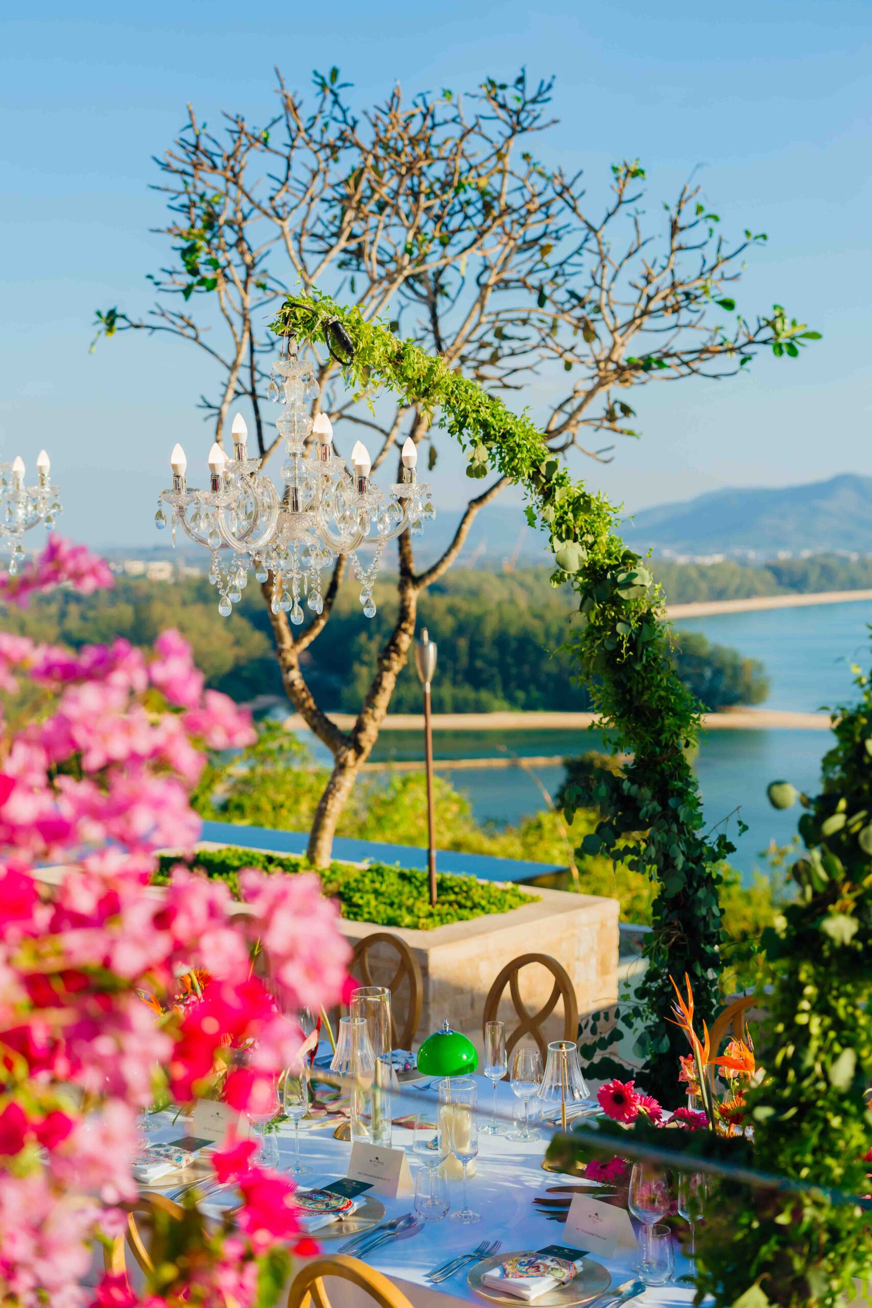 The evening was nothing short of extraordinary. Guests were welcomed to an exquisite private villa, located just minutes from the development, offering breathtaking views over the bay of Bang Tao Beach. The setting was transformed into a dreamlike scene: elegant chandeliers floated above a long, beautifully dressed dining table, adorned with bespoke floral arrangements and refined tableware, all perfectly aligned with Etro’s unmistakable aesthetic.