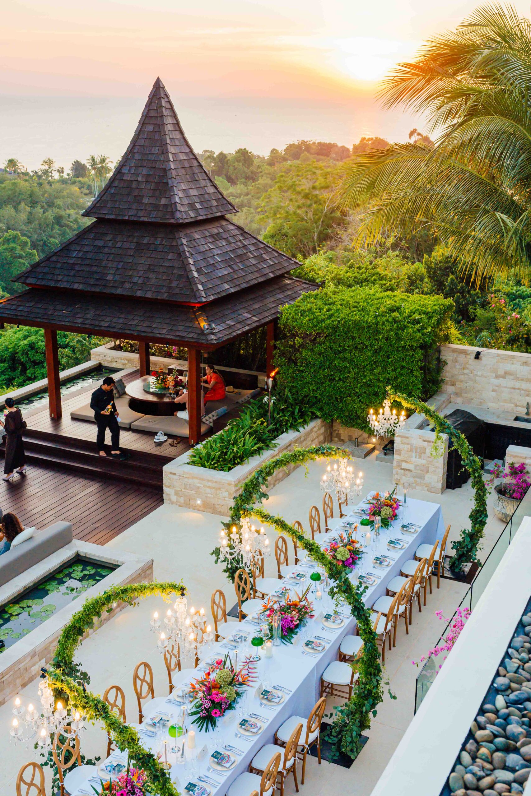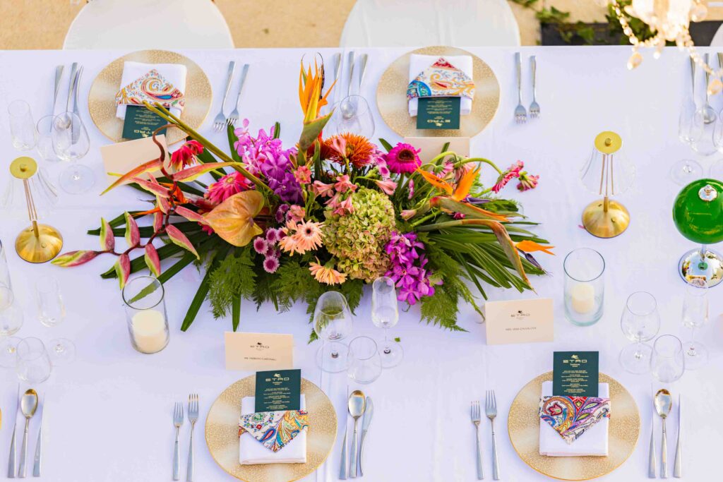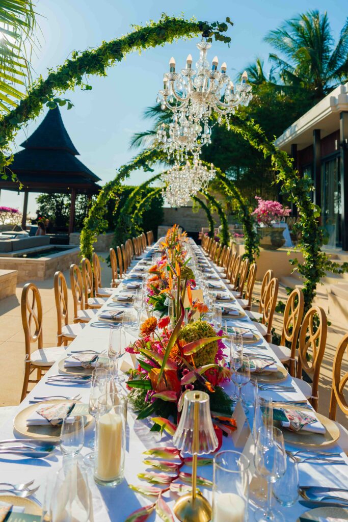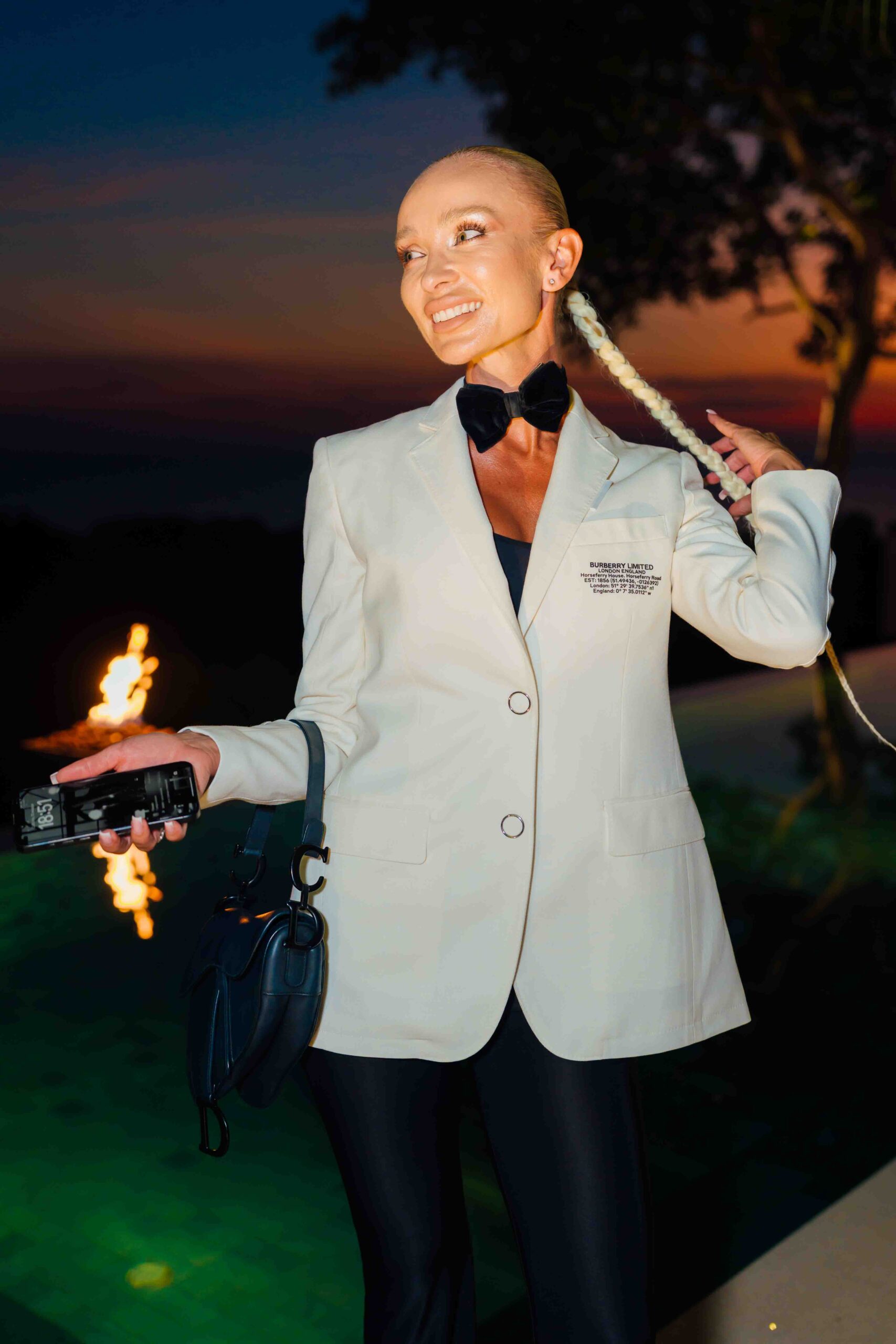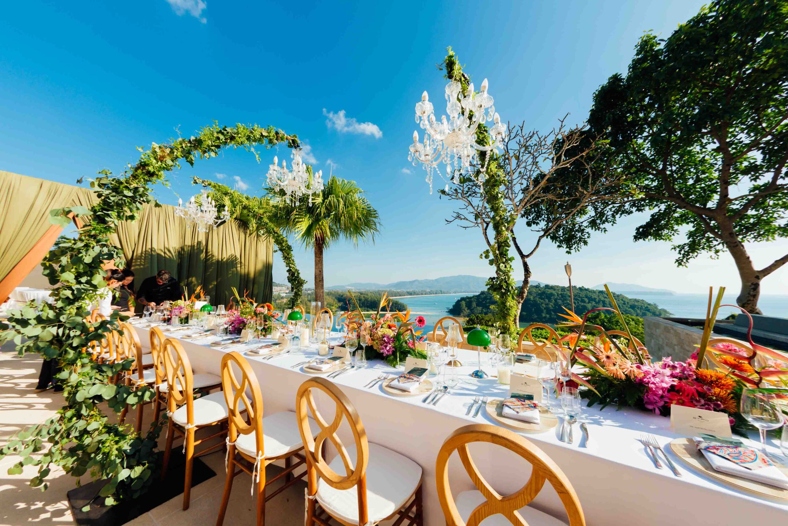 The evening was nothing short of extraordinary. Guests were welcomed to an exquisite private villa, located just minutes from the development, offering breathtaking views over the bay of Bang Tao Beach. The setting was transformed into a dreamlike scene: elegant chandeliers floated above a long, beautifully dressed dining table, adorned with bespoke floral arrangements and refined tableware, all perfectly aligned with Etro’s unmistakable aesthetic.