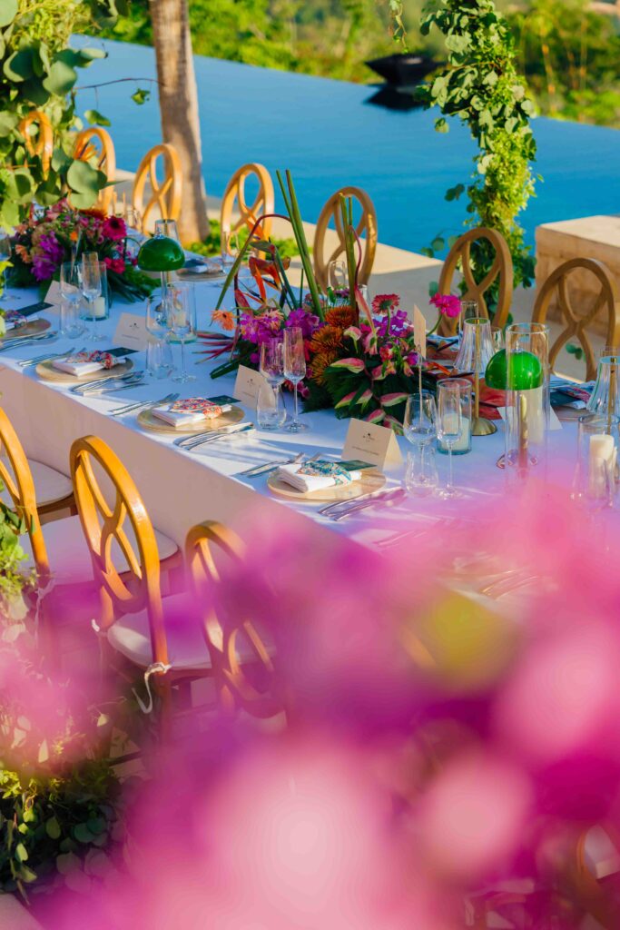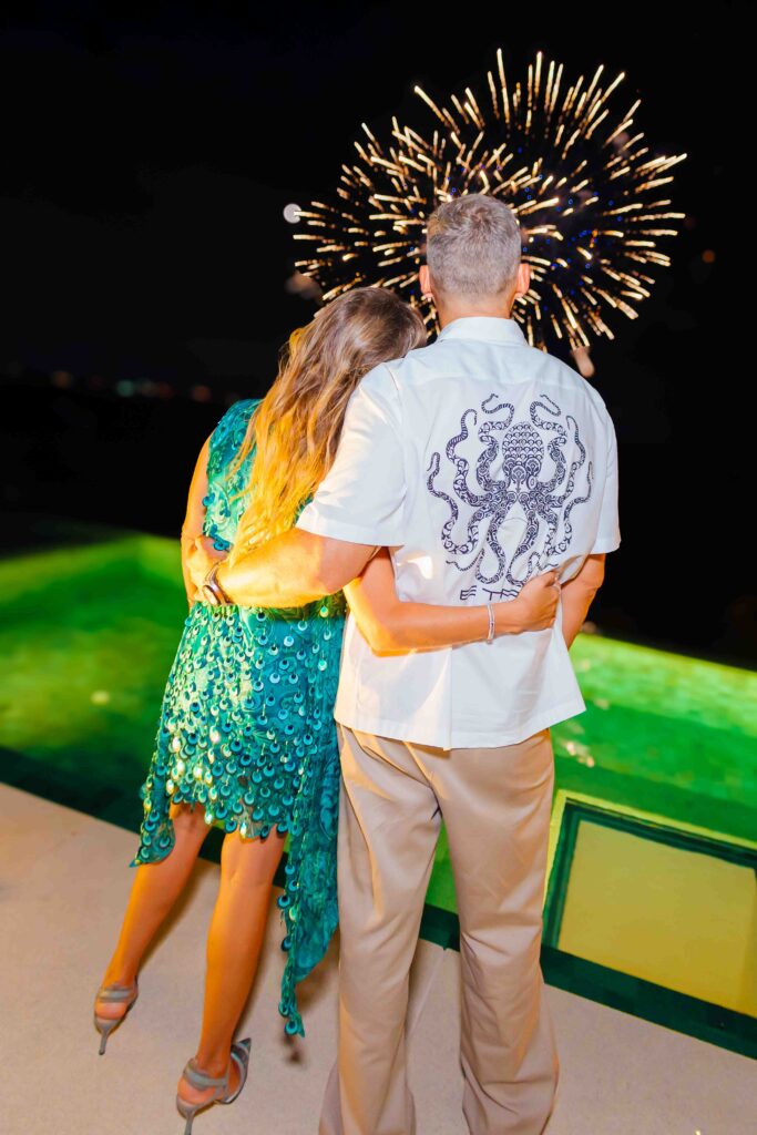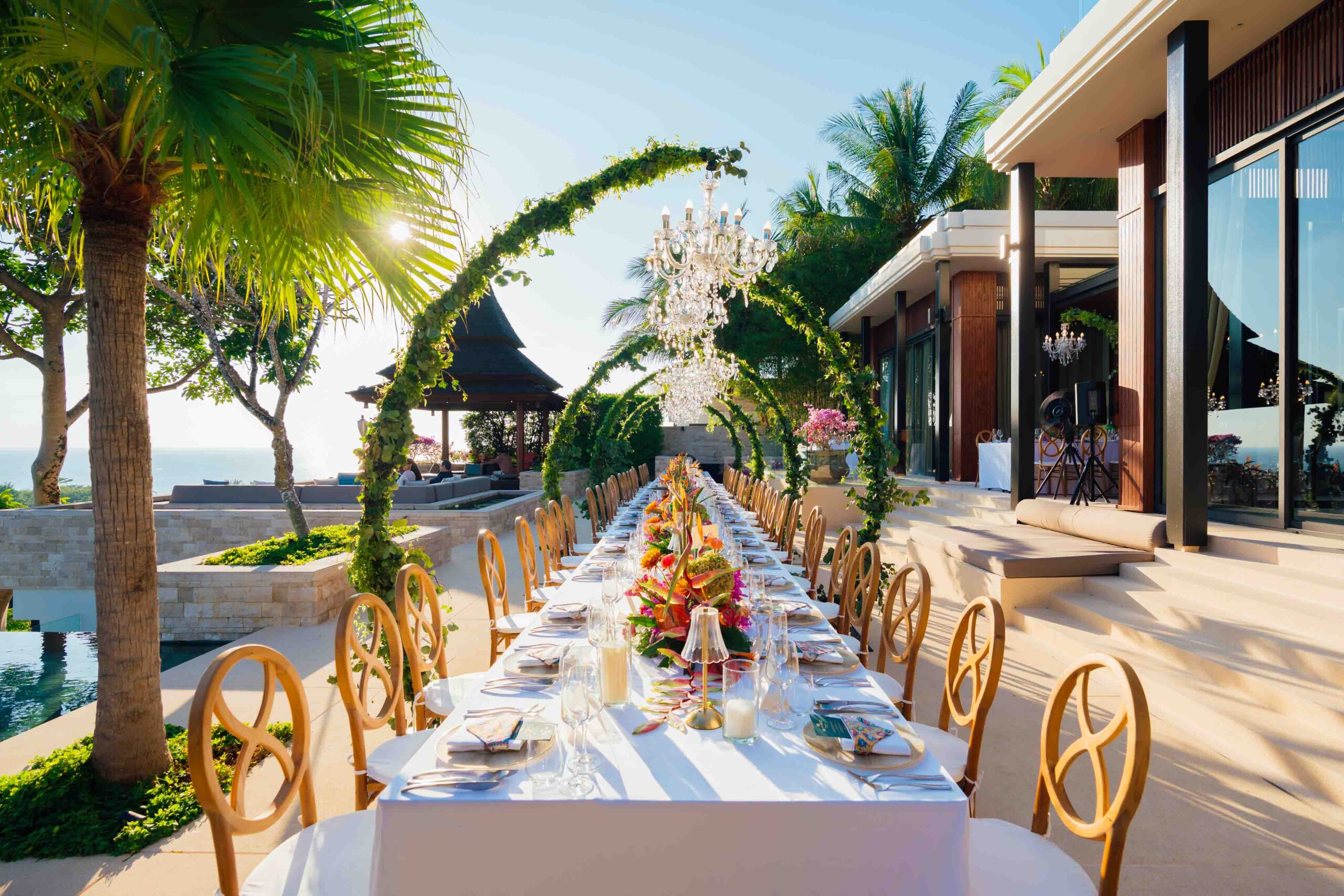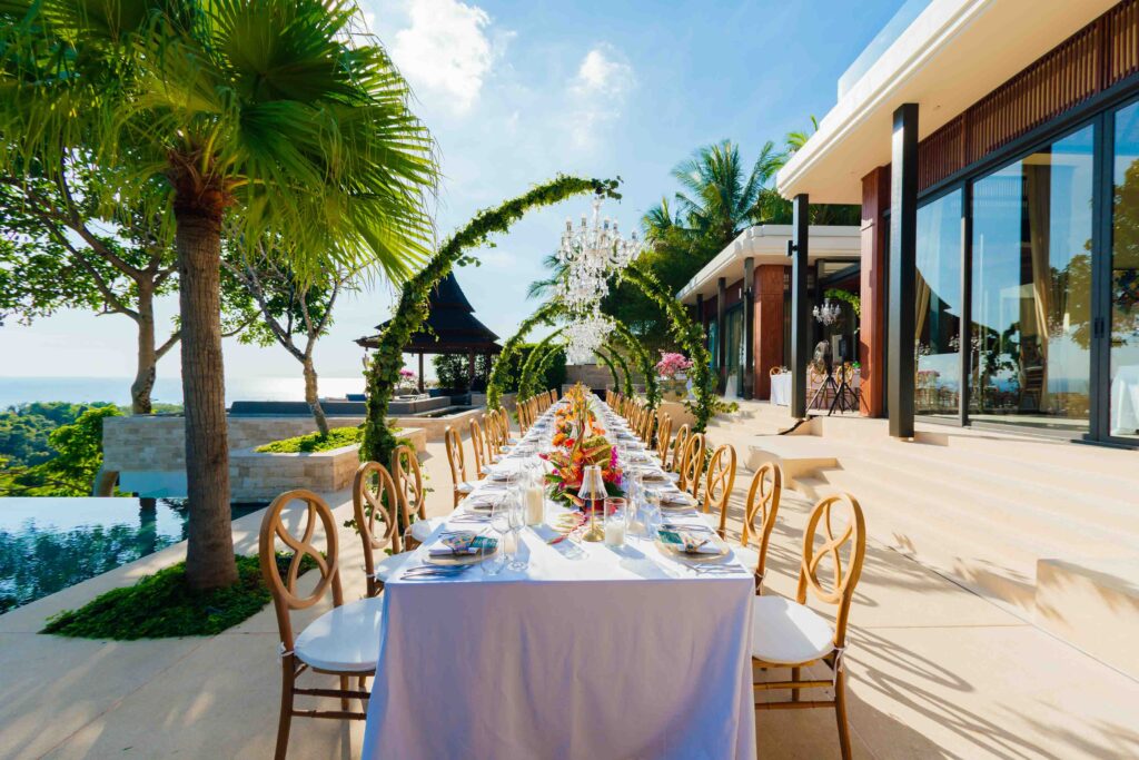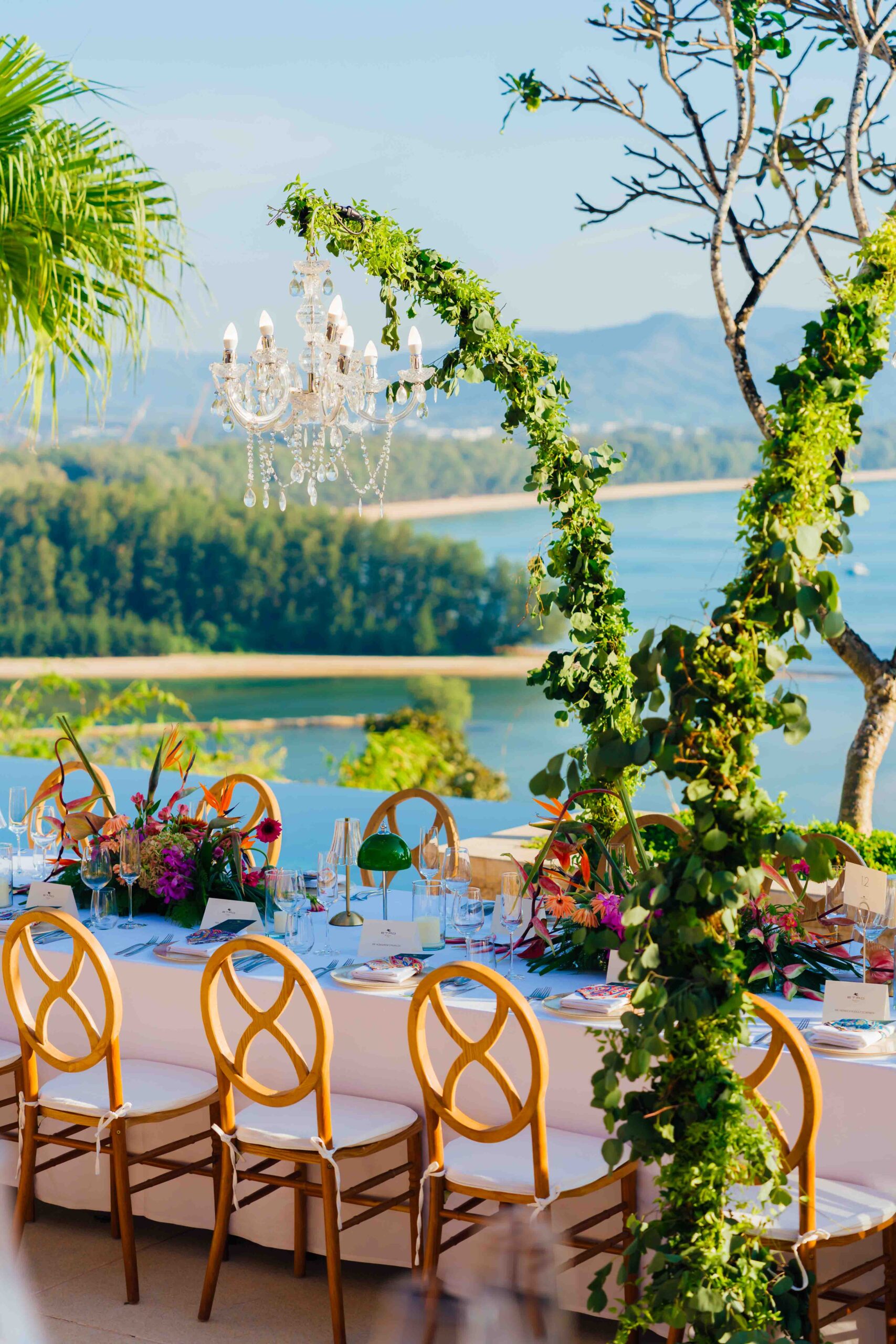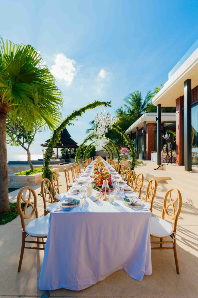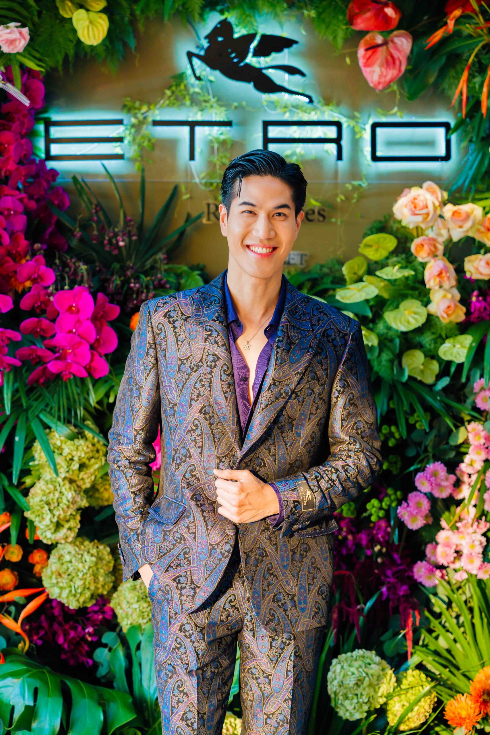 The evening was nothing short of extraordinary. Guests were welcomed to an exquisite private villa, located just minutes from the development, offering breathtaking views over the bay of Bang Tao Beach. The setting was transformed into a dreamlike scene: elegant chandeliers floated above a long, beautifully dressed dining table, adorned with bespoke floral arrangements and refined tableware, all perfectly aligned with Etro’s unmistakable aesthetic.