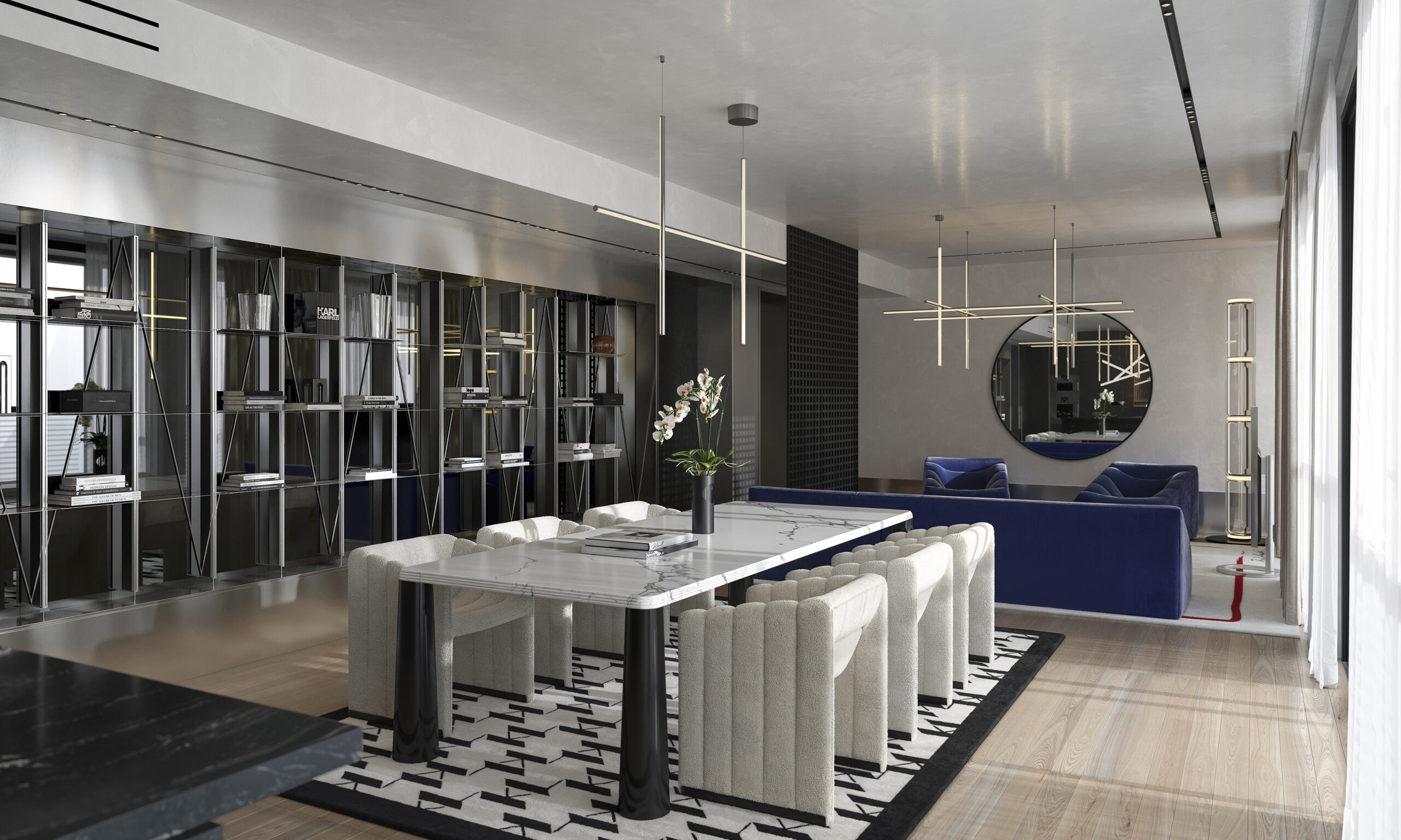 The One Atelier has led the creative direction of the project, translating Karl Lagerfeld’s design language into a contemporary residential expression shaped by light, geometry, location and cultural context.